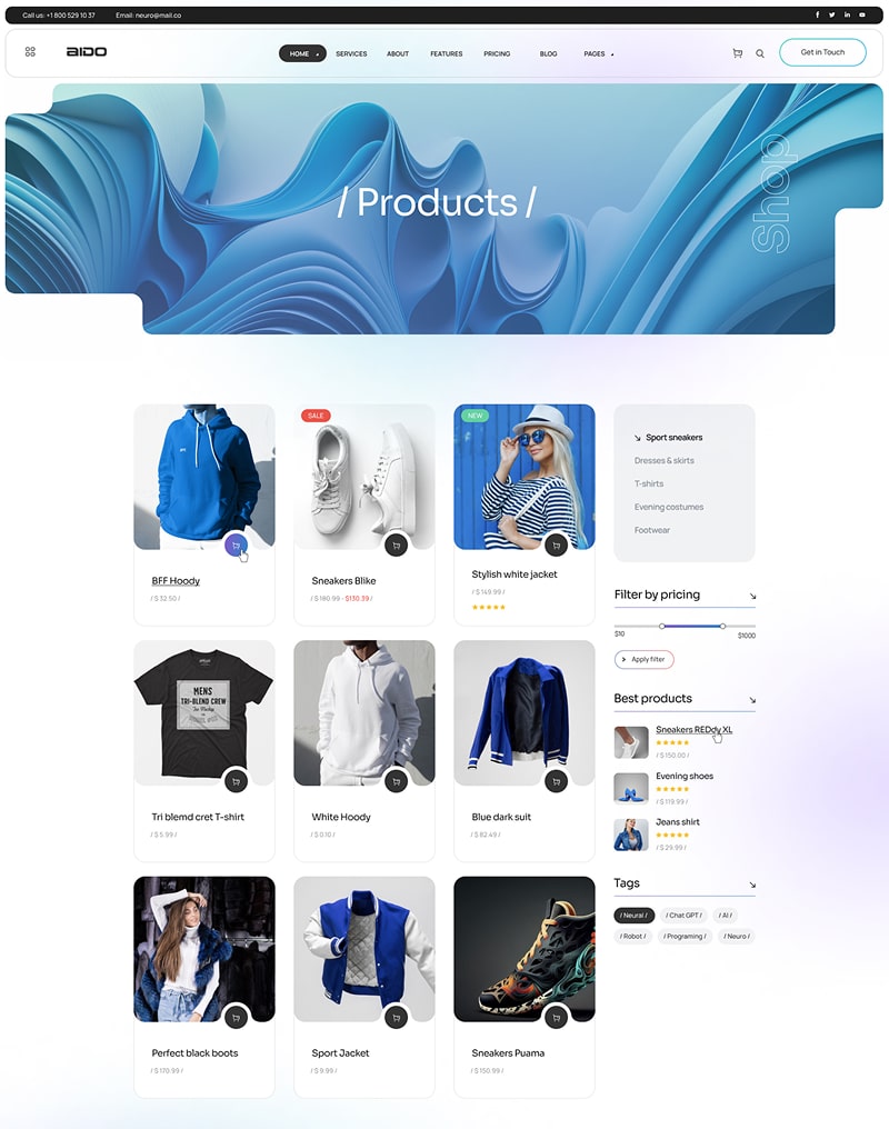 We created and included shop pages for business necessary. You can use it for different purposes, as example for sale or rent your product online.